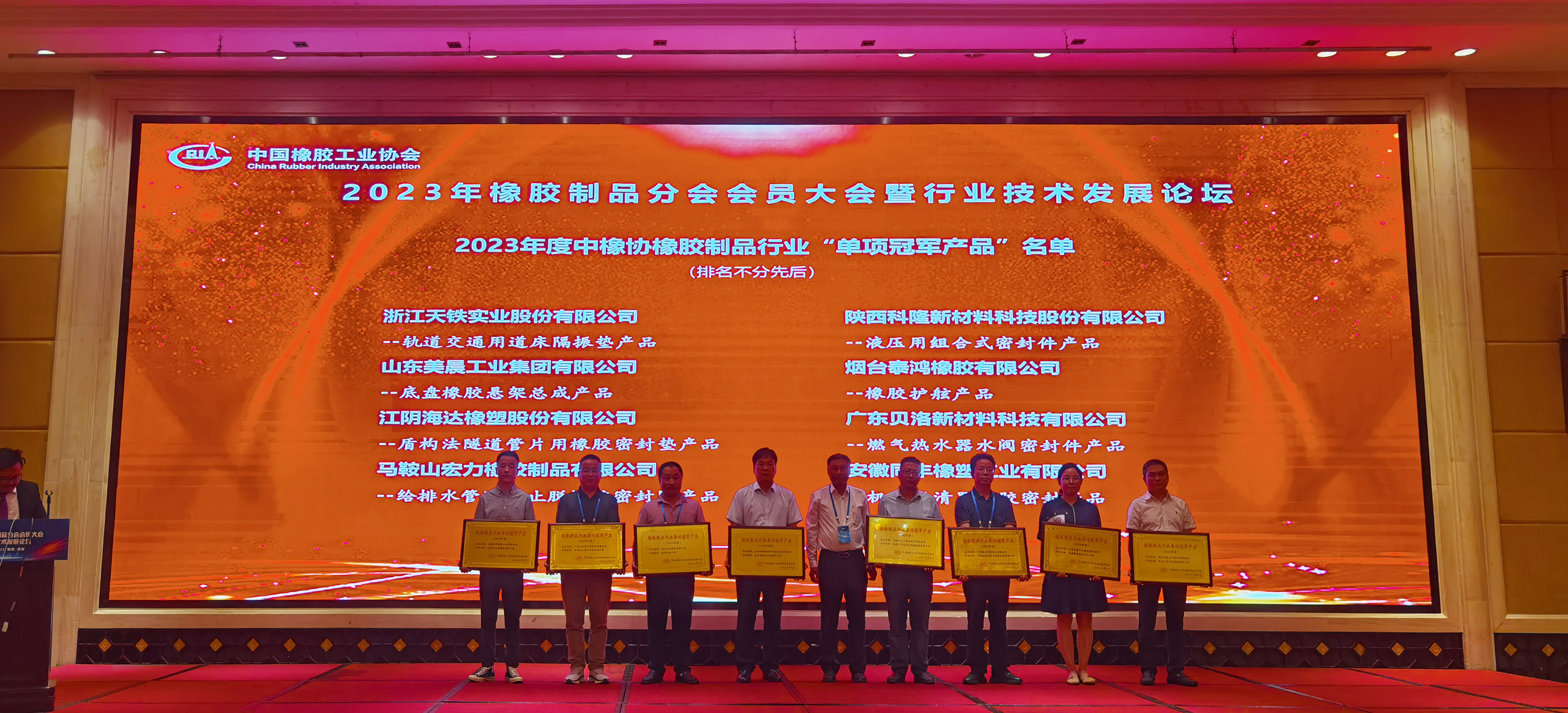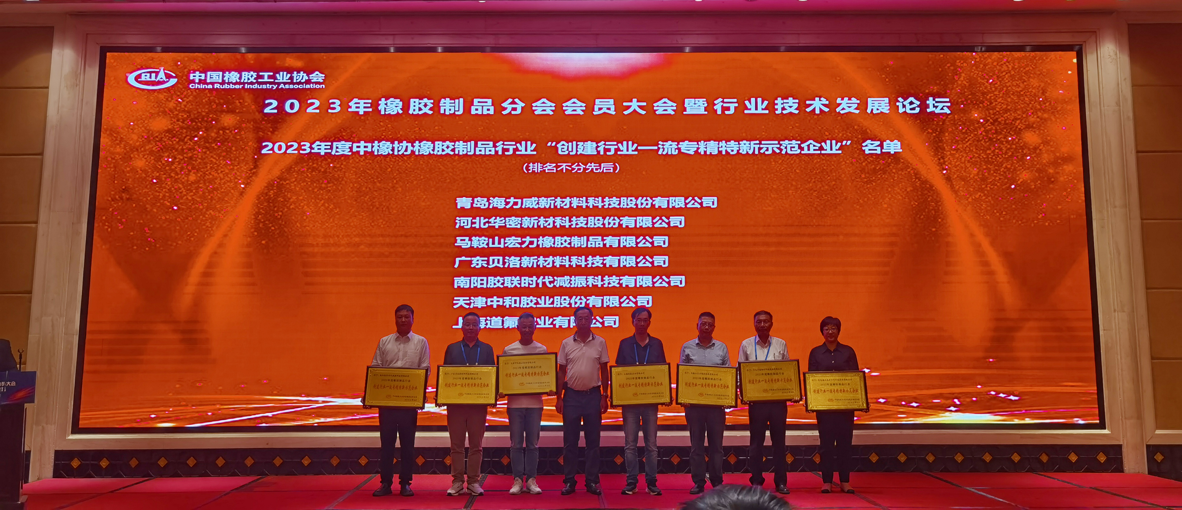 接下來,在會員大會暨行業發展論壇上,橡膠制品分會進行了工作匯報及行業經濟運行情況,并宣布貝洛新材獲得“橡膠制品行業單項冠軍產品 - 燃氣熱水器水閥密封件產品”、 “2023年度橡膠制品行業 - 建立行業一流專精特新示范企業”、“2023年度橡膠制品行業 - 科技創新企業”榮譽。