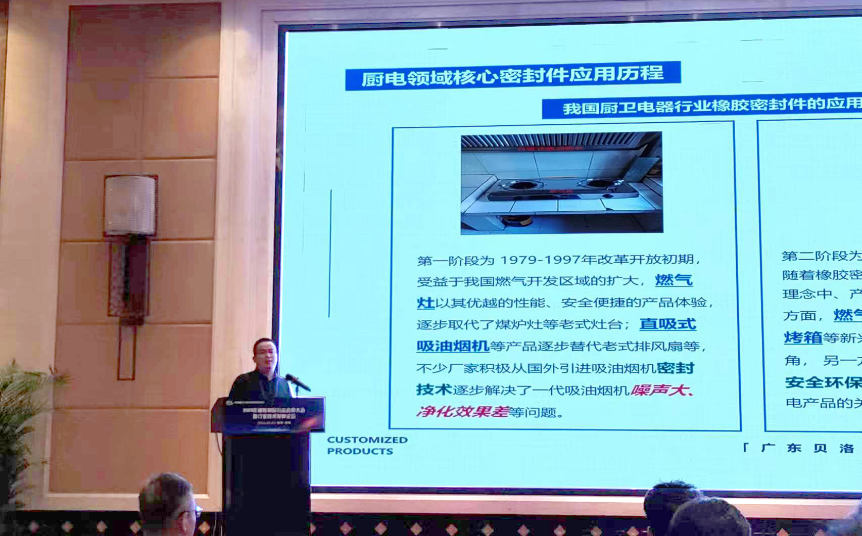 隨后,在行業技術論壇上,貝洛新材發展中心總監姚芳偉發表了《廚衛電器核心密封件的國產替代之路》主題演講,回顧了廚衛電器密封件行業的發展歷程,分析了國內外產品的差異區別、發展趨勢,為產品國產化做出了不平凡的貢獻。