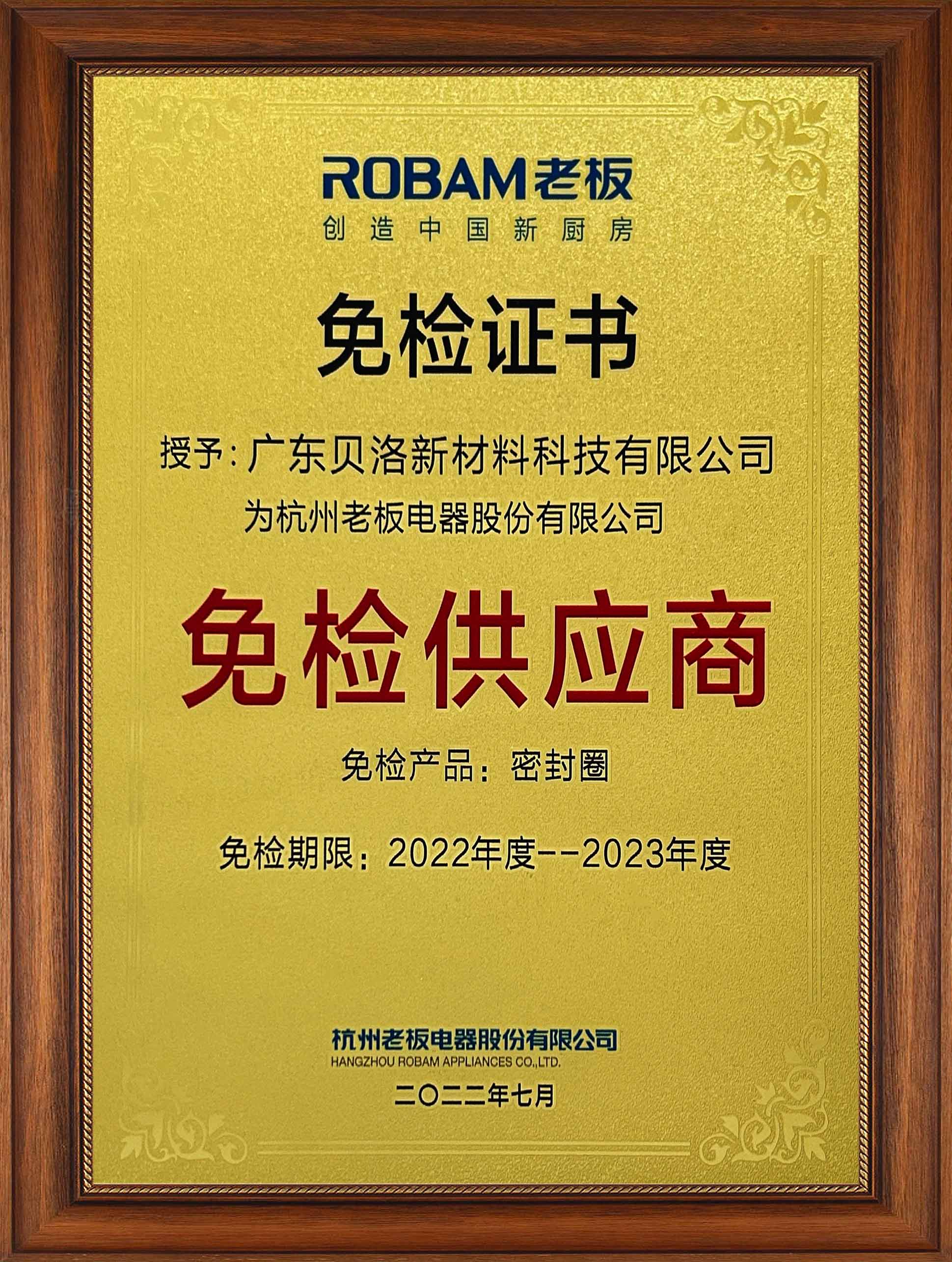 貝洛新材已為老板電器旗下多款產品提供了優質的橡膠管、密封圈等硅膠橡膠制品運用在洗碗機上,共同推進了產品的美觀性,創新性,功能性等方面的優化,榮獲老板電器頒發的“免檢供應商”稱號,實現未來可持續發展的道路。