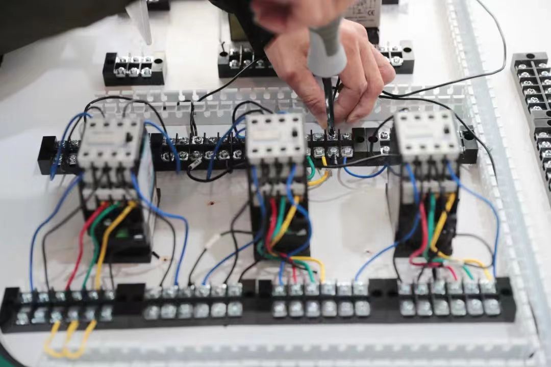 此次電工技能競賽分理論和實操兩部分。理論知識為閉卷筆試,考核參賽選手的電工專業(yè)基礎知識、安全操作規(guī)程等內(nèi)容;實操部分為在規(guī)定時間內(nèi)完成輪流進行徒手心肺復蘇和星三角降壓啟動電路接線兩項技能比拼。