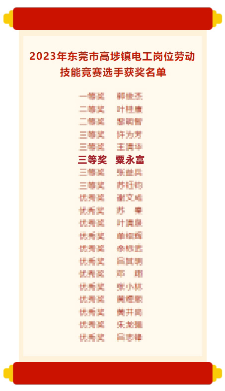 “高埗鎮(zhèn)電工技能競賽三等獎”