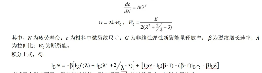 Rivlin & Thomas基于斷裂力學對橡膠的疲勞性能進行了深入研究,指出疲勞壽命受裂紋增長特性、形變幅度、初始缺陷尺寸以及材料本征特性等多重因素影響。其中,非線性彈性斷裂能量釋放率G是衡量材料在斷裂時單位面積上能量釋放率的指標,它反映了材料在疲勞過程中抵抗斷裂的能力。斷裂時的能量消耗主要包括化學鍵的斷裂以及黏彈性滯后損失轉化為的熱能耗散。密封用橡膠硅膠材料