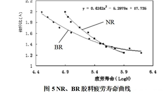 NR與BR在不同應變幅度下的疲勞特性比較:NR和BR都容易在動態形變下產生裂口。但在大形變下,NR會因結晶而提高疲勞壽命;而在小形變下,BR因其分子鏈柔順性好而表現出更長的疲勞壽命。因此,在輪胎胎側等應變較大的部位,應增加NR的用量;而在帶束層等應變較小的部位,則應增加BR的用量。橡膠硅膠材料密封圈