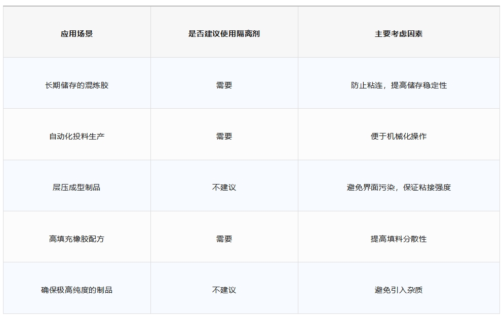 隔離劑的存在有助于防止膠料團(tuán)聚,使得后續(xù)加工時的剪切力更均勻,避免混煉過程中因局部膠料過度剪切而導(dǎo)致的塑性不均。
