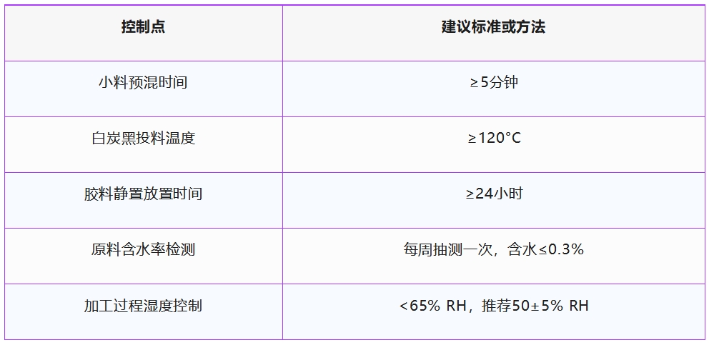 定期檢測原料含水率:特別是吸濕性強的原料,如白炭黑、硬脂酸等。