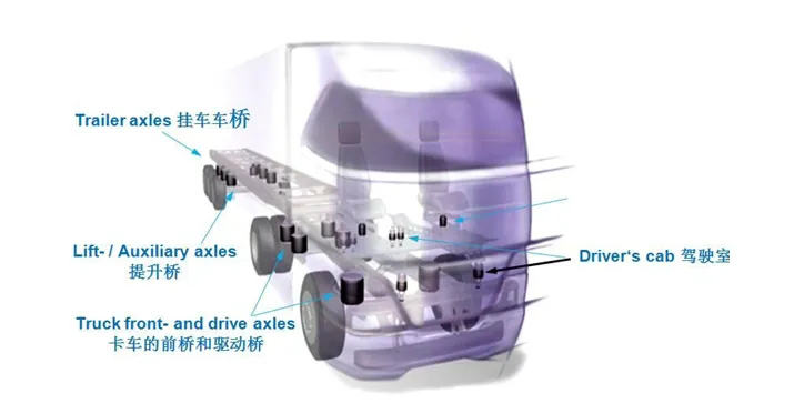 • 空氣彈簧:剛度可調,適配不同載荷。