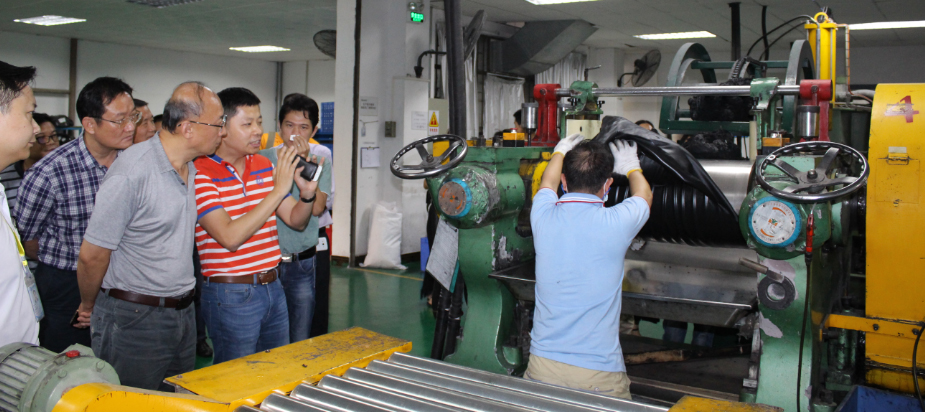 在董事長蘇會敏的帶領下,領導們首先來到公司會議室,聽取了針對公司近年來發(fā)展狀況、發(fā)展方向和投資等情況的詳細介紹。介紹完后,一行領導先后來到工程試驗研發(fā)中心、硫化成型、開煉等區(qū)域進行現場參觀。在參觀過程中,制造總監(jiān)蘇方云先生向領導們詳細介紹了產品原料、生產工藝流程、質檢流程等。