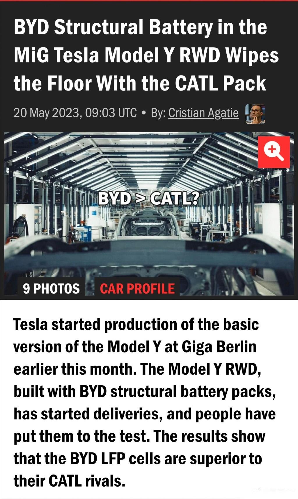 這是特斯拉柏林超級(jí)工廠首次使用中國(guó)品牌的電池,也是特斯拉在歐洲市場(chǎng)推出的第一款采用磷酸鐵鋰電池的車。目前從中國(guó)上海工廠出口到歐洲的Model Y基礎(chǔ)版采用了寧德時(shí)代的磷酸鐵鋰電池,電池容量為60kWh,續(xù)航里程為455公里。兩者的主要區(qū)別在于比亞迪的刀片電池可以直接安裝在車身結(jié)構(gòu)中,減少了重量和成本。