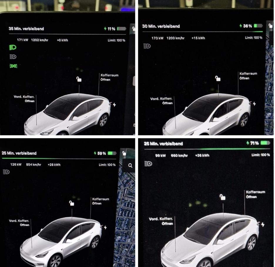 有用戶分享了這款車型的實(shí)測(cè)充電功率數(shù)據(jù),刀片電池版本的Model Y充電峰值功率達(dá)到170kW以上,15分鐘就能從11%充至71%。對(duì)比寧德時(shí)代版本,可以看到比亞迪版本的高功率充電時(shí)間維持的更長(zhǎng),充電功率也比較高。