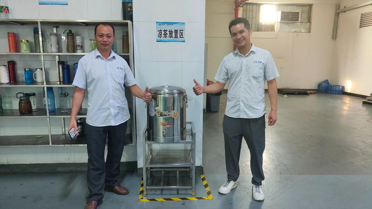 涼茶用純中藥配方熬制,解暑效果好,味道清甜!員工們紛紛表示,雖然天氣悶熱難受,卻能感受到公司對員工的心意,既暖心又清涼。