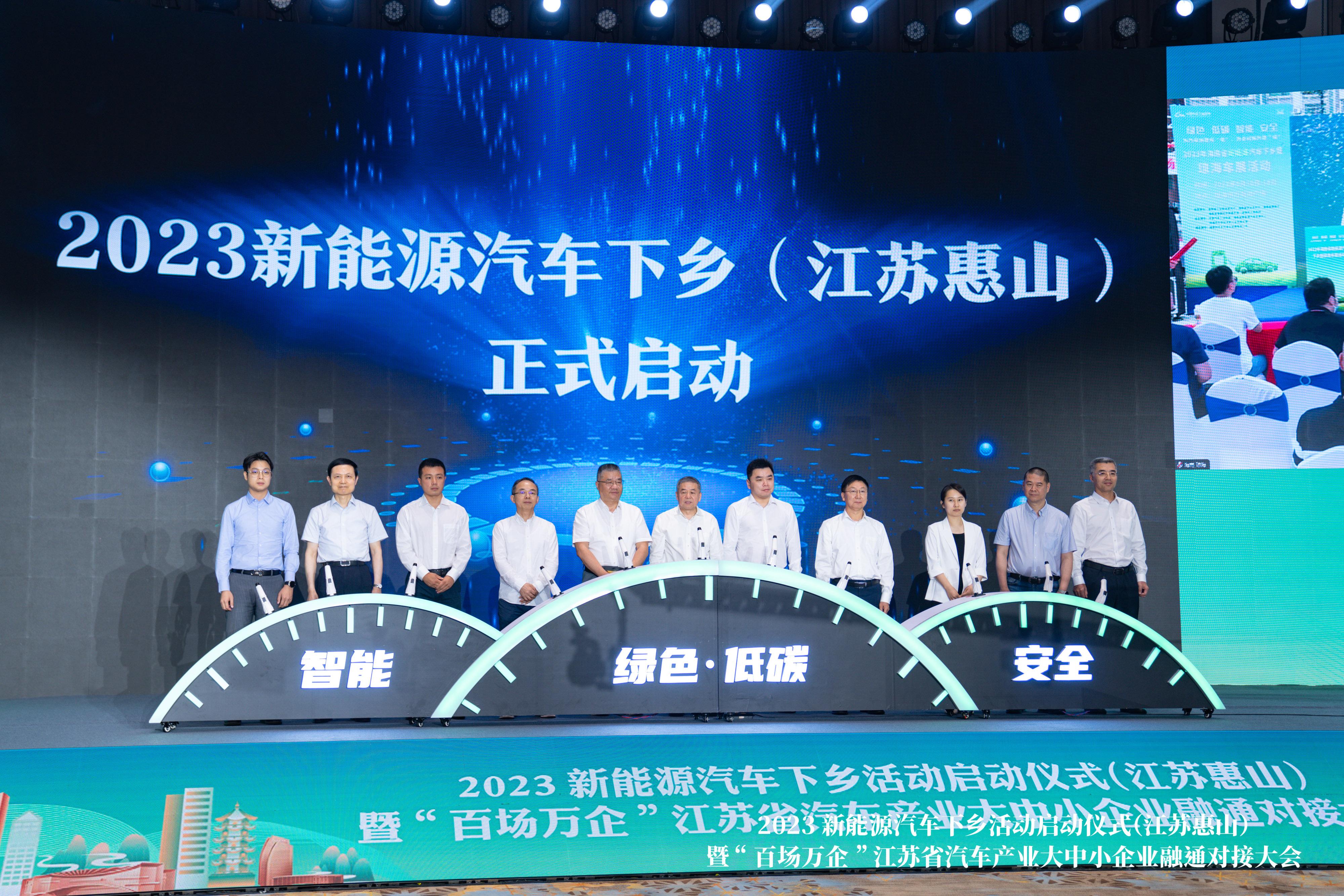 2023-06-19 10:06:112023年6月16日上午,在無錫惠山舉行了新能源汽車下鄉活動啟動儀式(江蘇惠山)暨“百場萬企”江蘇省汽車產業大中小企業融通對接大會。這次活動旨在為汽車消費充電,為鄉村振興添綠色。