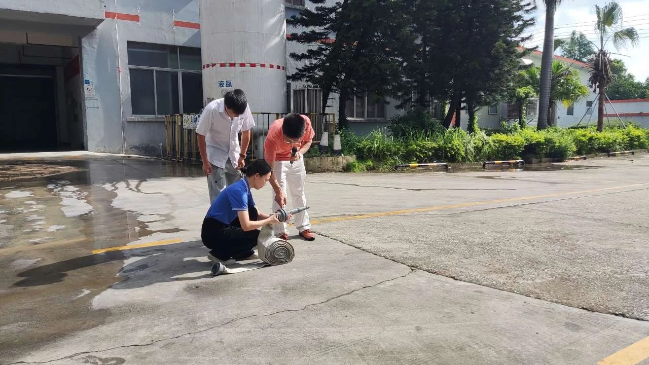 本次演練模擬廠區生產車間發生化學品泄露并著火,廠區工人發現災情后,立刻啟動火災應急預案,快速響應滅火救援和開展人員疏散,經過緊張有序的救援,化學品和火勢得到及時撲救,演練取得了預期效果。