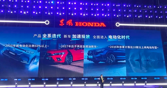 在2023上海車展上,本田中國宣布全面進入電動化時代,2027年后,本田在中國推出的所有車型均為混合動力車型和純電動車,不再投放新的純燃油車型。到2035年,本田中國將實現純電動車銷售占比100%。此前,本田中國宣布,2030年起,在中國市場將僅銷售純電和混動車型,不再投放新燃油車,在新能源汽車快速增長的背景下,本田中國不得不提前其電動化進程。